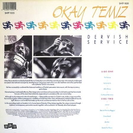 Oriental Windとしても活躍したトルコの変幻自在ドラマー、Okay Temizの89年リリースの作品。年代が年代なだけに音自体はそれ以前に比べてエレクトリック色が強くなっていますが、独特のタイム感と千手観音バリのドラミングが半端ない緊張感を放つエスニック・フュージョン・サウンド。立体感のあるパーカッションのダンスグルーヴの上をスピリチュアルなフルートが泳ぐA1「The Vulture」、ヴァイオリンの壮大な音色に意識が開けるA3「After Peace」、異色のレゲエ・サウンド(ハマってます)B2「Dervish Service Reggae」、低空飛行なパーカッション・グルーヴに祝祭感のあるフルートがのるB4「Zumba」など全9曲収録。何をしても何を用いてもOkey Temiz。個性が溢れかえってます。