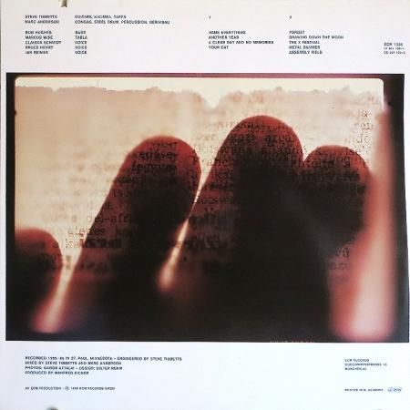 ミネアポリス出身の異端ギタリスト、Steve Tibbettsの86年リリースの作品。Marc AndersonとMarcus Wiseが参加。時にはノイジーに、時には端正なギタープレイという「静」と「動」を併せ持ち、様々な心象風景を描くコンテンポラリー・ジャズ。透明感のあるアコギとディストーションの効いた激しいギターとのレイヤーで聴かせるA2「Another Year」、ヴォーカルも入りエキゾティックで感動的なA3「A Clear Day And No Memories」、メロディが東洋的にも聴こえるロマンティックなB2「Drawing Down The Moon」、ビリンバウも入り激しいB5「Assembly Field」など全9曲。どこの国ともつかない、まったく独創的で実験的な世界。素晴らしいです。