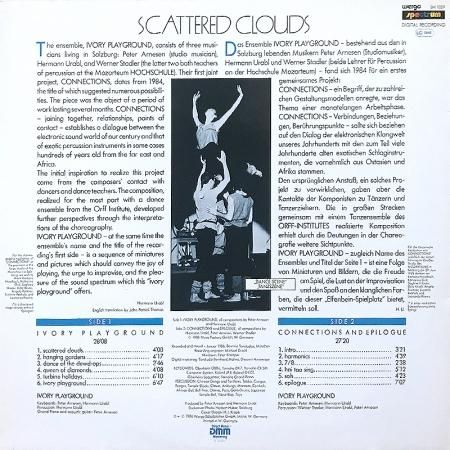 オーストリア出身のマルチ・プレーヤー Peter Arnesen と打楽器奏者2人によるユニット Ivory Playground の86年リリースの作品。良音質の作品を多く配するドイツ優良レーベル Wergo から。ジャズや現代音楽のマナーを踏襲しつつ、クリアなシンセと生楽器のレイヤリングで内なる心象風景をシンプルに描くアンビエント・サウンド。まさしく露が踊るかのような生命力のあるピアノと高周波サウンドのA3「Dance Of The Dewdrops」、ミニマルなシンセベースとスペーシーなフレーズがシンプルに絡むA5「Turbine Holidays」、静かにうねるシンセと朴訥なギターが優しいA6「Ivory Playground」、鳴りの良い打楽器とエスニカルなフレーズの反復音楽B4「Hai Tao Sing」、打楽器の倍音が空気に滲んでいくB6「Epilogue」など全12曲。ジャケット(素晴らしいですね!)のようなアヴァンな印象は無いですが、内なる声に純粋に耳を傾けようと試みた印象が強く、心打たれる1枚。まさしく「音楽家」ですね。素晴らしいです。