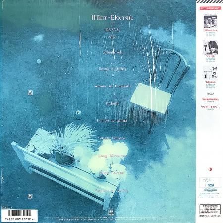 大阪出身のヴォーカリスト Chaka こと 安則まみ と 松浦雅也 のデュオ Psy・S の87年リリース作品。歩くようなベースとバシッと打ち付けるドラムによる気持ち良いグルーヴのシンセポップA3「Aozora Ha Tenkiame」、ドリーミーなアンビエント・ポップA4「Toyholic」など全9曲なんですが、やはりここはB3「Cubic Lovers」でしょうか。鳴りの良いパーカスとフローティンなシンセサウンドの極上アンビエント・ポップ名曲。
