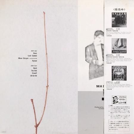 ダンサーには名曲「S.O.S.」でもおなじみギタリスト 松原正樹 の84年リリースの作品。佐藤準、斎藤ノブ、中村哲 などがバックを担当。鳥の鳴き声とパーカッションから始まるバレアリック・チューンA1「Been」、現在のダンスミュージックにも正しく通づるエレクトリック・グルーヴB1「Rush」、カッティングがピカイチのブギー・チューンB2「Too Hot」、P-Funk調のシンセアレンジもユニークなB3「Stand!」など全8曲。佐藤準のシンセワークもハマります。