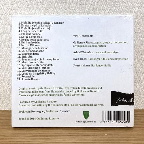 アルゼンチン・ロサリオ出身のギタリスト Guillermo Rizzotto の2014年リリースの作品。自身が北欧ノルウェーのヌーメダル地方を訪れた時に、現地のフォークミュージックやその伝統楽器の演奏者と出会い魅了されて製作した1枚。ノルウェーの伝統楽器ハーディングフェーレ(ヴァイオリンよりやや小型のフィドル)奏者 Even Tråen と Sivert Holmen 、クラヴィックライアーというハープにも似た北欧独特の楽器とヴォイスを担当する Åshild Wetterhus が参加。南米と北欧という一見イメージの被らない地域から出てきたアイデンティティが、近づき離れて、寄り添いながら混じり合うケミストリーが刺激的。Jan Garbarek のサックスのように静寂を切り裂き入ってくるハーディングフェーレの音色と、呼応するように哀感漂わせるアルペジオが幻想的な01「Preludio (solo version) / Renacer」、北欧の深い森を表現するかのようなセレッシャルなヴォイシングとむせび泣くようにバックで鳴る続けるハーディングフェーレに思わず目を閉じる07「No ska vesle bånet sova」、川の流れのようなゆったりとした18「Las verdades del tiempo」、スキルフルな演奏で内側の激情をうねらせる20「Rosensfole」など全21曲。こういう「真ん中を探る作業」が世界を音楽で繋げるんです。