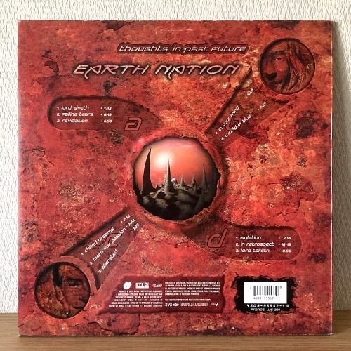 チェコ生まれドイツ育ちのギタリスト Marcus Deml と数多くの映画音楽の制作や Sven Vath、Ann Clark、Robert Palmer などの仕事にも関わるコンポーザー/プロデューサー Ralf Hildenbeutel によるユニット Earth Nation の94年作。Harthouse と並ぶジャーマントランス名門 Eye Q Records からのリリース。くぐもったビートとサイファイでアシッドなシンセによるレイヤードのダウンテンポA3「Revelation」、エスニカルな泣きメロロービートB2「World In Blue」、ステッパーズなニュールーツレゲエ的手法トランスC1「Chilled Dreams」、クリアなギターのスロー・トランスD2「In Retrospect」など全11曲。ギターサウンドがトランス特有のアカデミックな感じに聴こえますが、やはり「効く」ための音楽はサウンドクオリティが異常に高い。リーサル・ウェポンに、ぜひ。