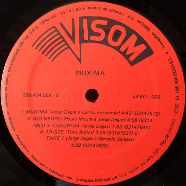 ブラジリアン・フュージョン・グループ Marcos Resende & Index のメンバーでもあるベーシスト Jorge Degas とパーカッショニスト Marcelo Salazar によるデュオ・アンサンブル87年作。フュージョンバンド Passport への参加やMPBCシリーズのアルバムをリリースした後に、80年台に入ってデンマークへ移住していた頃に製作したアルバムだそう。ゆたかな残響パーカスとスラッピンなベースの反復系A1「Pulo Do Gato」、Milton Nascimento の名曲を斬新かつ清々しく解釈A2「Ponte De Areia」、フローティンなベースがよく歌うA5「Valéria」(最高です!)、どこかエスニックなメロディと螺旋に交わるシーケンス的ミニマルフレーズB2「Rio Negro」、重心低く静と動を行き来するB5「Take 1」など全10曲。圧巻のスキルとブラジル音楽あるあるな突飛な楽想による、偶然と必然混じる奇跡な1枚。アンリ・マティスの「Dance」を用いたスリーヴデザインも、抑圧からの解放と快楽への欲求という意味でバッチリ合致。美盤良好。