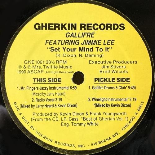 Kevin Dixon という名前でシカゴ優良ハウスレーベル Gherkin Records から多くリリースする Brett Kevin Wilcots による Gallifre 名義での90年作。ヴォーカリストに Jimmie Lee、リミキサーに Larry Heard が参加。