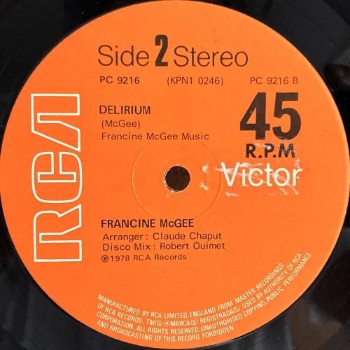 カナダ/ケベック出身の女性シンガー/キーボード奏者 Francine McGee の78年作。