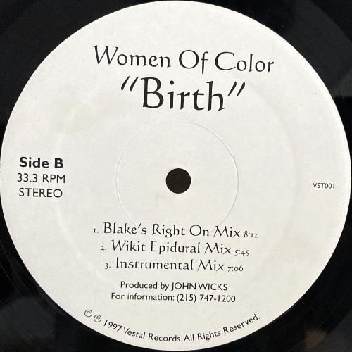 90年代に活躍するUSハウスプロデューサー John Wicks のプロジェクト Women Of Color の97年作。自身のレーベル Vestal Records からのリリース。後には Joe Claussell の別レーベル Natural Resource からもリリースしているので、知っている方も多いかもです。