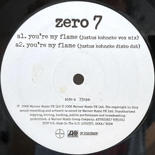 Zero 7 の作品にも多く関わる有名ヴォーカリスト Sia こと Sia Furler の気怠いヴォーカリゼーションと、グイッと引っ張る強いグルーヴなディスコトラックの組み合わせが◎A1「You're My Flame (Justus Kohncke Vox Mix)」、そしてそのダブA2、速いテンポのユニークなオリジナルB1など全4ミックス。