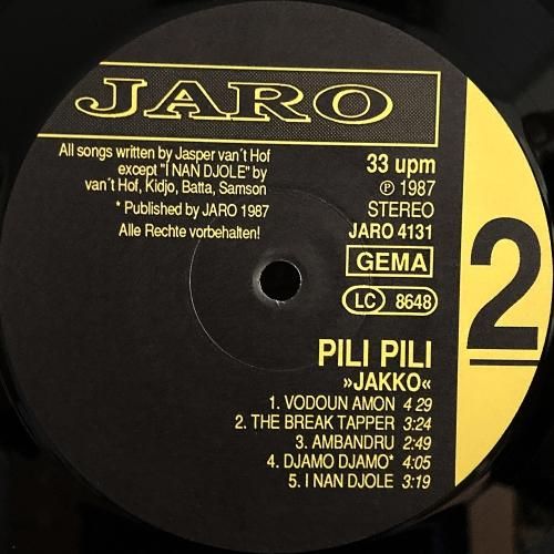 オランダのアフリカンミュージックユニット Pili-Pili の87年作。鍵盤奏者 Jasper Van't Hof の87年リリース作品。シンガー Angelique Kidjo、トランペット奏者 Manfred Schoof も参加。