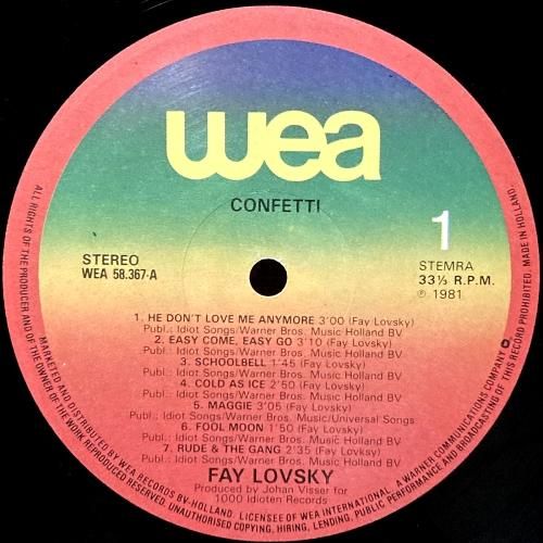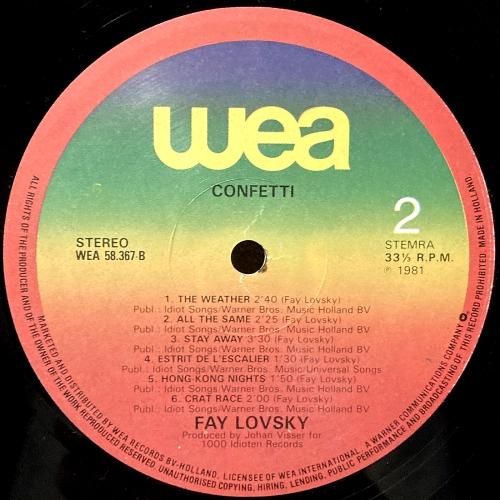 蘭ライデン出身の才女 Fay Lovsky の81年作。レーベル Idiot Records 代表でこの作品を最初に長い付き合いとなる Johan Visser がプロデュース。