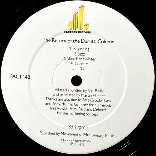 UK屈指の耽美派ギタリスト Vini Reilly 率いる The Durutti Column の80年名盤。マンチェスター名門 Factory レーベルからのリリース。