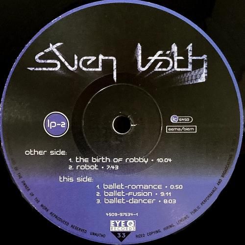 キャリア30年以上、イビザやビッグパーティでは必ず見る名前です。テクノレーベル Cocoon 代表 独 DJ/プロデューサー Sven Vath の94年作。90年代ドイツトランスレーベル代表 Eye Q Records からのリリース。