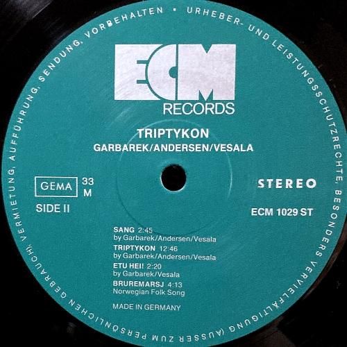 ECMがまだ今日のような独自スタイルを打ち出す前だったり、Jan Garbarek が自身のルーツに意識的になる前の作品ながらも、やはり ECM は ECM だと思わせる折衷感垣間見る1枚。ドイツ盤オリジナルプレス、LCあり後発盤。