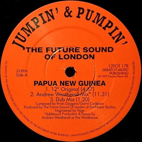 クリアな空気感をアシッドに汚しつつ、ラガなベースとブレイクビーツでレイヴィーに攻めるA1「Papua New Guinea (12" Original)」、煙た田舎でハレーション起こるシンセと土着なヴォイスを絡ませる確信犯的アシッドA2「Papua New Guinea (Andrew Weatherall Mix)」など全6ミックス。いろんなリミックスが存在しますが、試聴ファイルのつく上記2曲がベスト。UKバレアリック。UK盤オリジナルプレス。