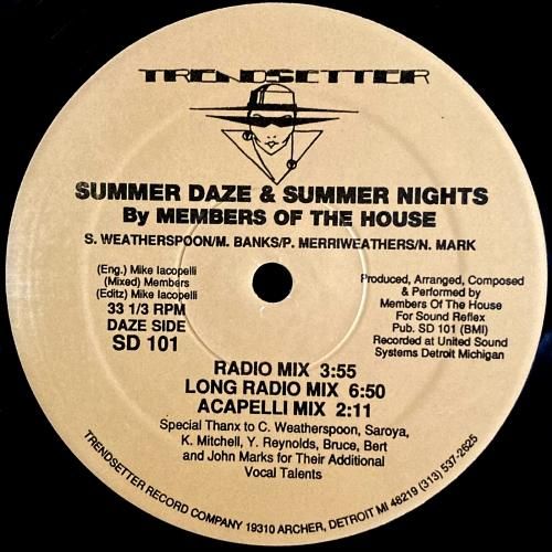 躍動するピアノとゴスぺリッシュなコーラス、アシッディなシーケンスによる正統派デトロイトハウスB1「Summer Daze & Summer Nights (House Mix)」、ヴォイスをリズミックに配置したダブ的ミックスB2「Summer Daze & Summer Nights (Deep House Track)」など全5ミックス。NYやシカゴとは違う、グッと腰を落とすグルーヴがデトロイトらしいサマーアンセム。USオリジナルプレス。