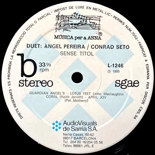カタラン色強いスパニッシュプロッグ/フュージョンバンド Catalonia にも所属したヴィブラフォン/打楽器奏者 Angel Pereira と、ジャズピアニスト Conrad Setó のデュオ作。85年リリース。