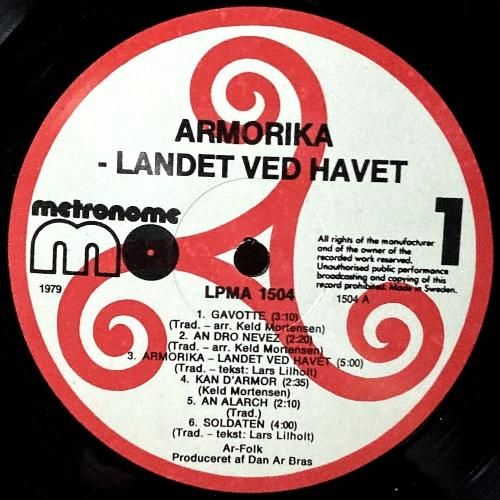 森羅万象なコーラスからジャズロックに展開していくA3「Armorika - Landet ved havet」、、勇敢で美しいポリフォニックコーラスA5「An alarc'h」B1「Vive Henri IV」、耽美なエスニックフォークB5「Frankrigs losseplads」、メランコリックな弦のジャズロックB6「Et folk - et menneske」など全12曲。