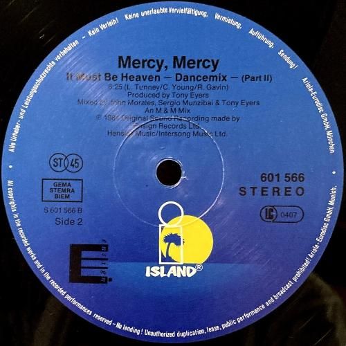 カリブ海に位置する英国領の小さな島バルバトス島出身のヴォーカリスト Colin Young のプロジェクト Mercy Mercy の84年リリースの12インチ・シングル盤。M & M Productions でおなじみ、John Morales & Sergio Munzibai プロデュース。