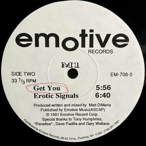 Insomnia 名義でも知られるハウスプロデューサー Matt DiMaria の別プロジェクト M1 の12インチシングル盤。91年リリース。硬軟両方リリースするUSハウス名門 Emotive Records からのリリース。
