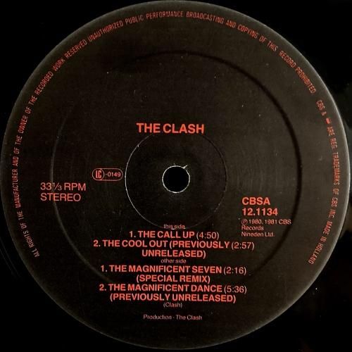 Joe Strummer のヴォーカル始まりで金物で覚醒しつつ、鳴りの良いパーカスと Paul Simonon の鬼カッコ良いベースで悶絶するミュータントディスコ代表A2「The Magnificent Dance (Previously Unreleased)」、The Call Up のダブB2「The Cool Out (Previously Unreleased)」など4曲収録。存在自体がヒーロー。EUプレス。