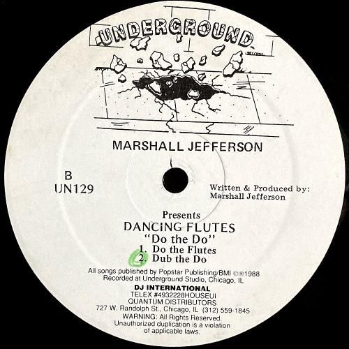 ハウスミュージックのオリジネイターの1人 Marshall Jefferson のプロジェクト Dancing Flutes の88年作。D.J. International Records 傘下で名前も◎なシカゴのレーベル Underground からのリリース。