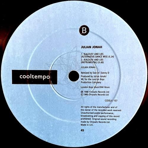 Larry Heard のような洗練と気品溢れるハウスミュージックA「Jealousy And Lies」、若干BPMアゲで突進力強めの Dancin' Danny D リミックスB1「Jealousy And Lies (Alternative Dance Mix)」とインストB2の全3ヴァージョン。深めな世界。UKオリジナル。