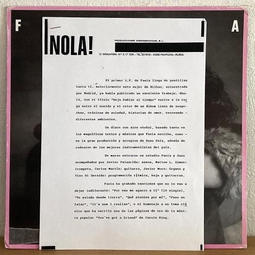 スペイン/ビルバオ出身シンガーソングライター Fania の89年作。ギター/キーボード演奏とプログラミング、そしてプロデュースも手掛けるのは Suso Saiz、オルガン奏者 Javier Mora、サックス奏者 Javier Paxarino、トランペット奏者 Matthew Simon などスペイン国内で活躍するミュージシャンが参加。