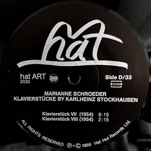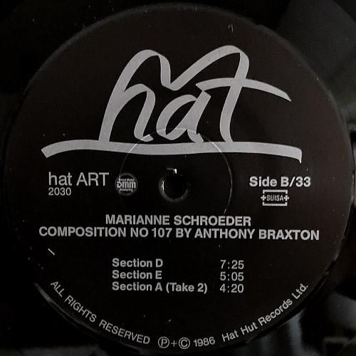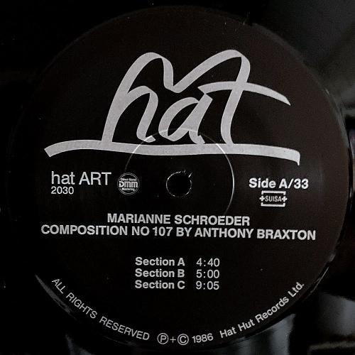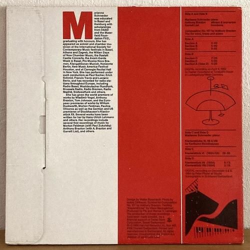 John Cage、Dieter Schnebel、Pauline Oliveros、Giacinto Scelsi など並いる現代音楽家とも共演、今現在大学などでも教鞭を振るスイス人ピアニスト/コンポーザー Marianne Schroeder の84年作。Anthony Braxton の「Composition No. 107」と Karlheinz Stockhausen の「 Klavierstücke」を演奏。