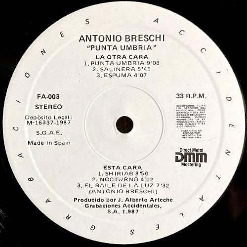 伊フィレンツェ出身ピアノ/マルチ奏者/作曲家 Antonio Breschi の87年作。スペインインディペンデントレーベル Grabaciones Accidentales のフラメンコに焦点を当てた短命レーベル Flamencos Accidentales からのリリース。Finis Africae で活動する Juan Alberto Arteche がプロデュース、プログレッシブなフラメンコアンサンブル Ketama の Antonio Carmona も参加。