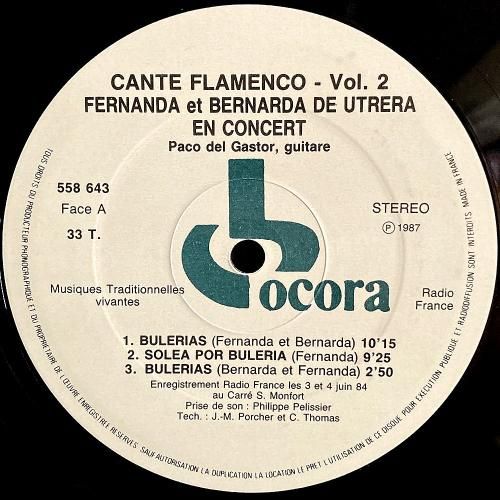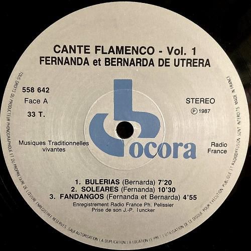 アフリカ大陸と挟むジブラルタル海峡の少し上、スペインセビリア出身、フラメンコ史上最も尊敬される Fernanda De Utrera と Bernarda De Utrera の姉妹デュオ Fernanda Y Bernarda De Utrera の88年作。世界各地の伝統音楽、民族音楽、宗教音楽を録音したフィールドレコーディングを数多くリリースする仏名門 Ocora から、パリ公演の様子とスタジオ録音をパッケージした2枚組。