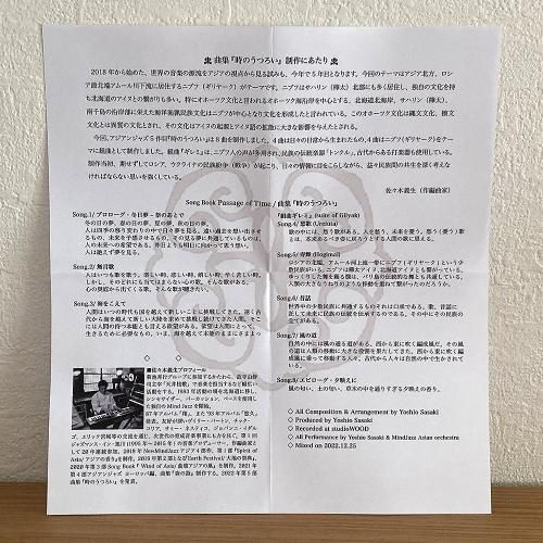 70年代にジャズミュージシャンとして東京のライブハウスで活動、 寺山修司主宰の地下演劇集団「天井桟敷」で演劇に合わせて即興で演奏していたという、北海道旭川在住の音楽家 佐々木義生 によるプロジェクト Mind Jazz Music の2021年自主制作盤。