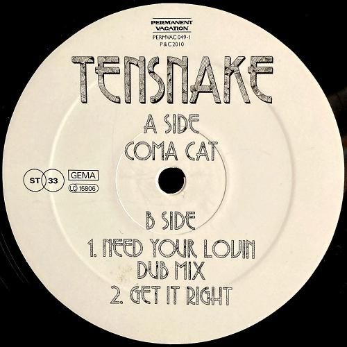 Jellybean プロデュースの Anthony & the Camp によるガラージチューン「What I Like」のベースラインとピアノリフを用いて80'sな空気感を出しつつ、パワーのあるサウンドでグイッと引っ張るピークタイムブギーチューンA「Coma Cat」、エレクトリックなファンクグルーヴB1「Need Your Lovin (Dub Mix)」など全3曲。さまざまな夜を彩る名曲です。ドイツ盤。