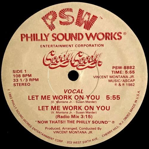 腰落ちるしっとりとしたグルーヴに記憶に残るメロディメイク、後半のスキャット部分やピアノソロも絶妙なダンスクラシックスA1「Let Me Work On You」、2枚使いなどで発揮する Paul Simpson によるリミックスB2「Let Me Work On You (Reprised Dance Mix)」など全4ミックス。US盤。