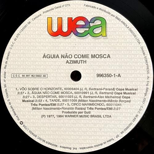 日本ではNHK某番組のテーマ曲でも知られる、清涼感あふれるアーバンメロウ名曲A1「Voo Sobre O Horizonte」、ブライトな鍵盤の美しい響きA4「Tarde」、Ivan Conti と Alex Malheiros による前のめるように複雑な螺旋グルーヴ絡み合うB1「Tamborim, Cuíca, Ganza, Berimbau」、低重心ファンクネスB4「Falcon Love Call (Armazen No. 2)」など全10曲。やはり Jose Roberto Bertrami の奇跡にも近い美しい鍵盤に尽きます。ブラジル盤。