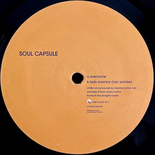 UKマンチェスター出身ベテランプロデューサー Baby Ford こと Peter Adshead、ドイツ出身でその Baby Ford との活動歴も長いプロデューサー Thomas Melchior、UKマルチプレイヤー Tim Hutton の3人によるユニット Soul Capsule による99年リリース名盤。この盤は2012年リイシュー盤。シカゴディープハウス勢にも似たグルーヴと奇妙な声ネタ使いのミニマルハウスA「Overcome」、同じく跳ねそうで跳ねすぎないグルーヴに若干デトロイトなコード感で展開するB「Lady Science (NYC Sunrise)」の2曲収録。今なお人気なミニマルハウス名曲。ナイスな再発。UK盤。