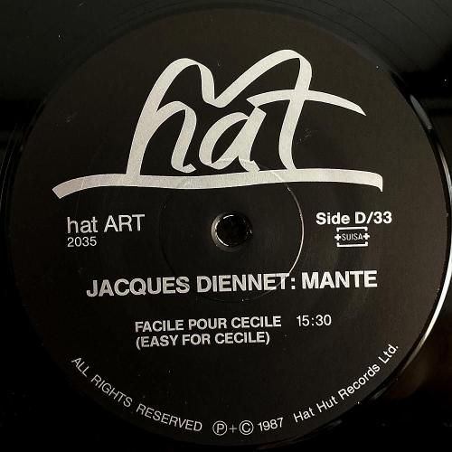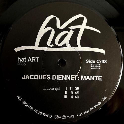 立体シンセの奥行く音場の中で電子変調していく長尺A「Mante (Mantis) I」、Jean-Marc Montera の美しく狂気なギターソロB2「Mante (Mantis) III」、シンクラヴィアの力強い周波変調でノイジーな空間C2「Παντἀ ῥεί II」、Gerard Siracusa のマリンバの幻想アルペジオD「Facile Pour Cécile (Easy For Cécile)」など全9曲2枚組。スイス盤。