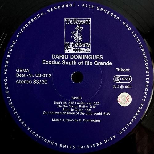 南米アルゼンチンパタゴニア出身、マプチェ族の母とイタリア系の父を持つ先住民音楽家 Dario Domingues の83年作。