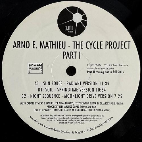 仏ディープハウス名門 Deeply Rooted House からもリリースするプロデューサー Arno E. Mathieu の2012年作。自身のレーベル Clima Records からのリリース、そして Joe Claussell のホーム Sacred Rhythm Music が配給で協力。泣きのギターが滲む長尺ディープサウンドA「Sun Force (Radiant Version)」、近未来系イントロでグッと引っ張るB2「Night Sequence (Moonlight Drive Version)」など全3曲。Sacred Rhythm Music が配給をするのも納得なアフロフューチャリスティックな未来サウンド。US盤。