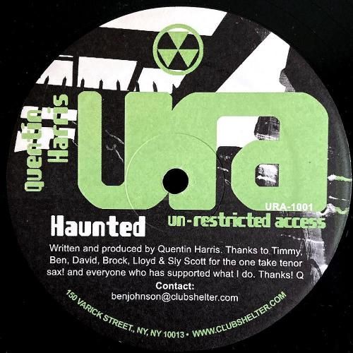デトロイト出身、NYで活動するDJ/プロデューサー Quentin Harris の2006年名盤。Shelter 傘下 Un-Restricted Access からのリリース。ブラックフィーリング溢れるしなやかなグルーヴと、テクノ好きにもアピールするサウンドメイクが特徴。一音ずつ増えていくハウスマナーな展開でジワジワハメていくA「Haunted」、ブラックなグルーヴと欧州テック勢のようなサウンドメイクでドラマティックに展開するB「House」の全2曲。前年にリリースされた Ame などの影響がUSハウス勢にも現れた時期の、先んじた名曲。USオリジナル。