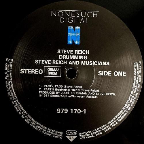 4人がそれぞれ叩く打楽器が少しずつタイミングがずれていきつつ、その微妙なズレから新しくリズムやメロディが生まれていくA1「Part I」、マリンバに移り変わり柔らかい天上系透明ヴォイス混じるA2「Part II (Beginning)」、この作品でのすべてのマテリアル(ボンゴ/マリンバ/グロッケン/ヴォイス/ピッコロ)での集大成B3「Part IV」など全5パート収録。現代ミニマルやポストクラシカル、電子音楽などにも強い影響を与えた名盤。ドイツ盤。