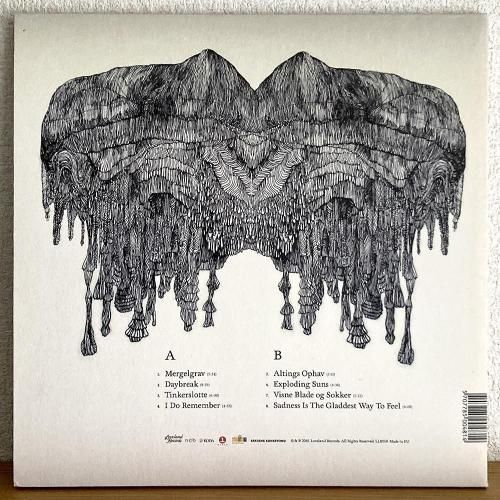 分厚いアンサンブルの壮大イントロからポエットリーディングに展開する静動混じる緊張A1「Mergelgrav」、Jacob Bro らしい柔らかいサスティンのイントロから力強いアンサンブルA2「Daybreak」、北欧らしい牧歌な空気B1「Altings Ophav」、フリーキーでエスニカルな祝祭ブルースB2「Exploding Suns」など全8曲。Jacob Bro の静寂と北欧ジャズ特有の祝祭混じる1枚。デンマーク盤。