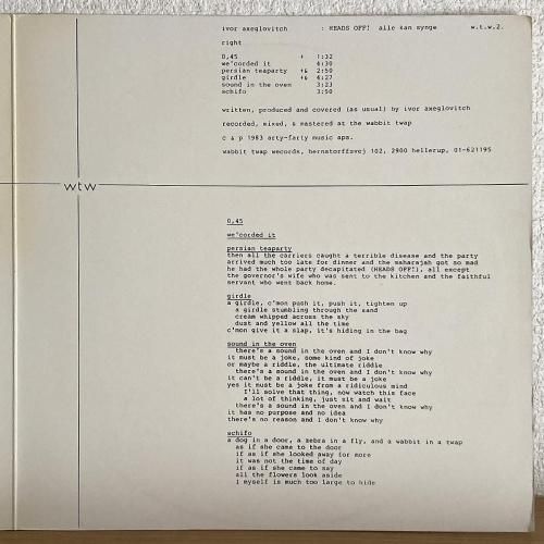 Wabbit Twap Wecords | w.t.w.2. | DNK | 1983 | M: VG+ / VG+ | JK: VG | ゲートフォールドスリーヴ