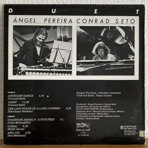 カタルーニャ色強いスパニッシュプロッグ/フュージョンバンド Catalonia にも所属したヴィブラフォン/打楽器奏者 Angel Pereira と、ジャズピアニスト Conrad Seto のデュオ作。85年リリース。ジャズ、室内楽、地中海フォークの要素が静かに混ざり合った名作。80年代後半のカタルーニャの音楽家たちが持っていた、ジャンルに縛られない自由さと繊細さがそのまま記録されています。