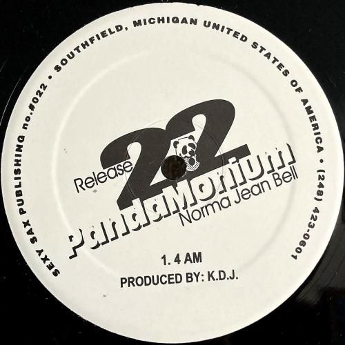 デトロイトの才女 Norma Jean Bell による2001年作。プロデュースは Moodymann(KDJ=Kenny Dixon Jr.)。A面「4 AM」は、マシーナリーなスネアの質感に艶やかなサックスが絡み、さらに Moodymann の名曲「Long Hot Sexy Night」のサビフレーズをそのまま引用した、深夜のフロアを静かにもう一段上へ持ち上げるような絶妙のテンション感が魅力。いわば“一晩の中で何度目かのピークをさりげなく飾る”タイプのトラックです。B面も同じミックスを収録。音の空気から黒さまで、まさに“漆黒”という言葉がぴったりな一枚。US盤。