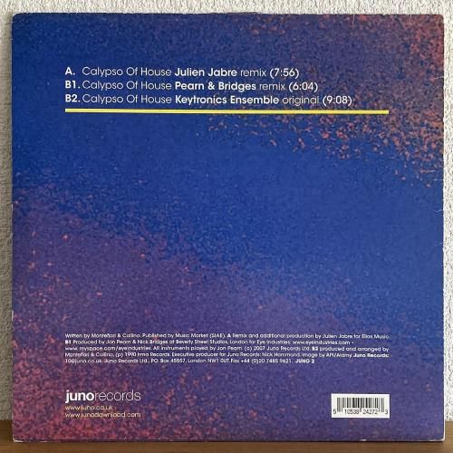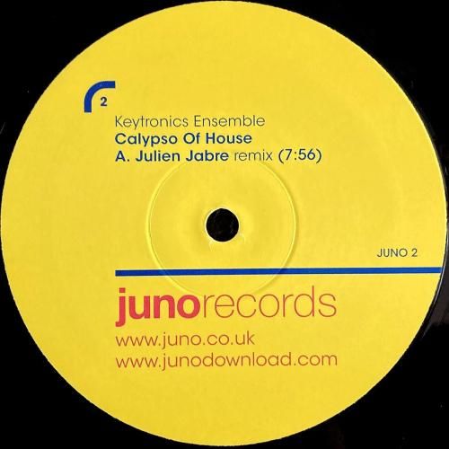 UKの大手レコードショップ Juno Records がアニバーサリー企画として展開した “名曲リミックス” シリーズの一枚。Keytronics Ensemble によるイタロハウス名曲「Calypso Of House」を、仏プロデューサー Julien Jabre がテック寄りに再構築した A「Calypso Of House (Julien Jabre Remix)」を収録。端正なキックと、原曲の持つ高揚感をうまく現代的に翻訳した仕上がりです。さらに B2 には、楽園系ハウスの代表格として知られる オリジナルヴァージョン「Calypso Of House (Keytronics Ensemble Original)」も収録されており、名曲の良さをあらためて堪能できる構成。UK盤。